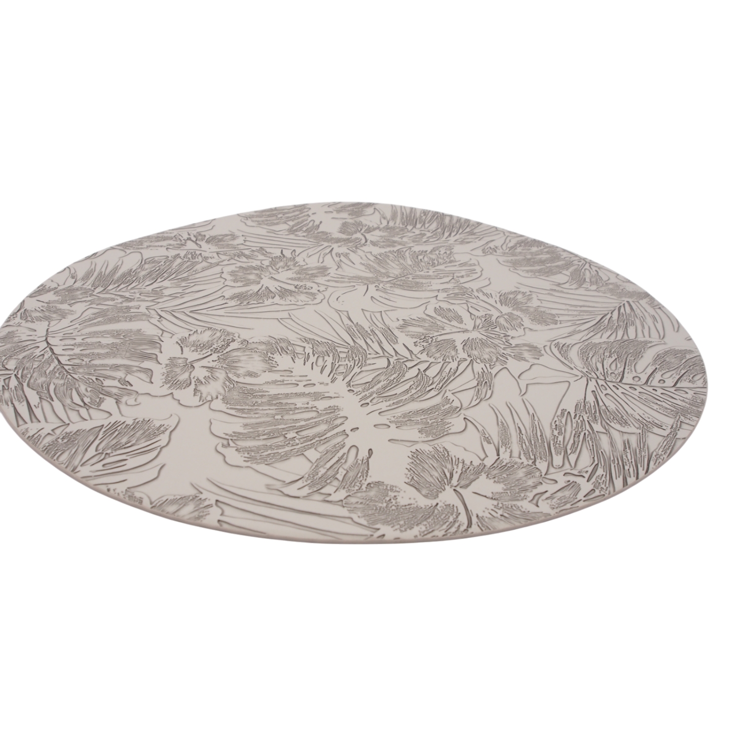 Suteikite savo stalui švaros, tvarkos ir elegancijos pojūtį su šiuo stilingu, apvaliu 38 cm skersmens stalo padėkliuku. Šviesi, neutrali spalva ir subtilus tropinių gėlių bei lapų raštas suteikia modernų, prabangų įvaizdį, kuris puikiai dera prie įvairių indų ir interjero stilių. Tai praktiškas ir dekoratyvus pasirinkimas tiek kasdieniam naudojimui, tiek šventiniam stalui.