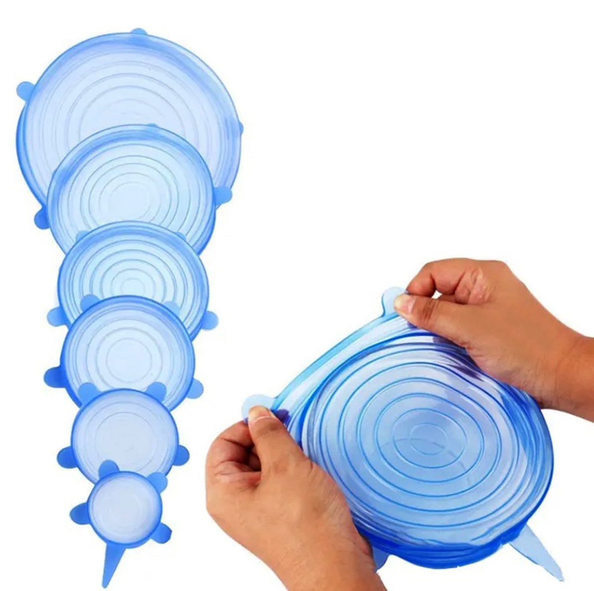Pamirškite vienkartinę foliją ar plėvelę – šie elastingi silikoniniai dangteliai padės ilgiau išsaugoti maisto produktų šviežumą ir apsaugoti juos nuo išdžiūvimo ar gedimo. Dangteliai pagaminti iš aukštos kokybės, karščiui atsparaus silikono, todėl juos galima naudoti tiek šaldytuve, tiek šildant mikrobangų krosnelėje ar plauti indaplovėje – jų savybės išlieka nepakitusios net ir po daugybės naudojimų.