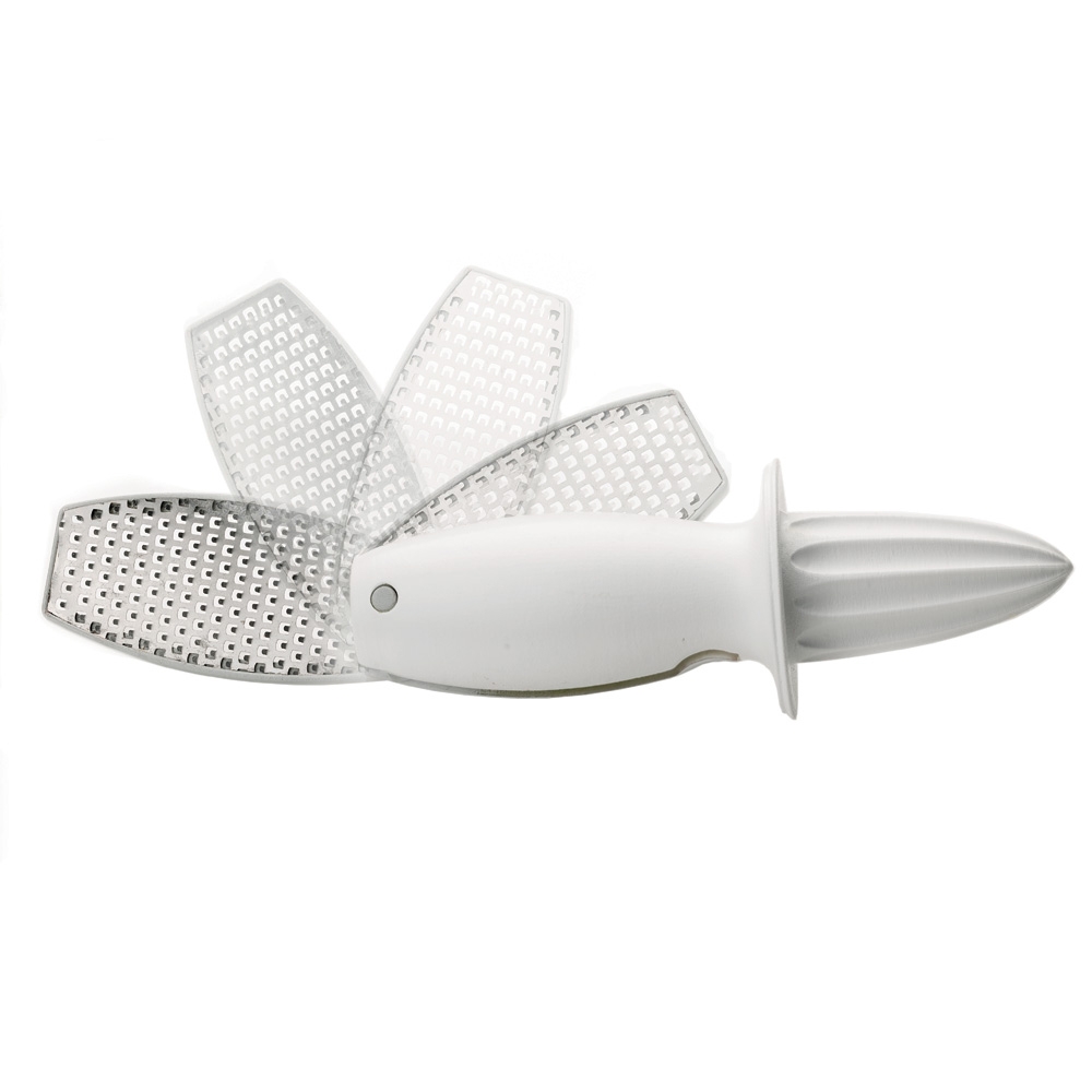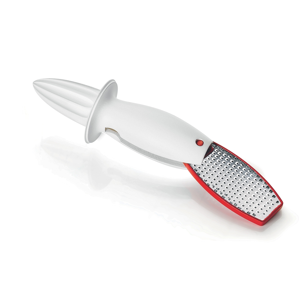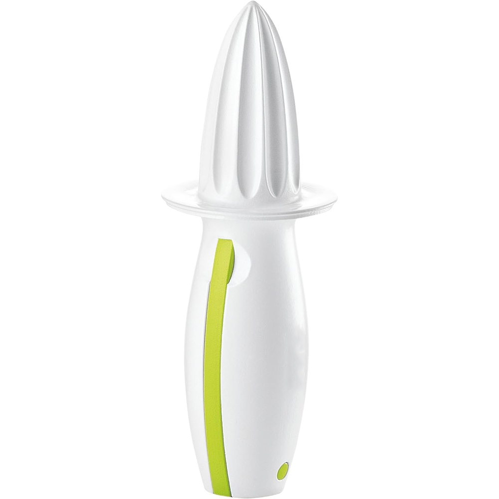 Virtuvėje reikia praktiškų aksesuarų, o ši citrinų spaudyklė, kuri atlieka ir trintuvės funkciją, yra tikrai universali. Labai patogu laikyti rankoje, galima įdėti į indaplovę ir leidžia mums paprastu judesiu išspausti (nevarvinant) apelsinus ir citrinas bei nutarkuoti žievelę. Tikras šefo padėjėjas!