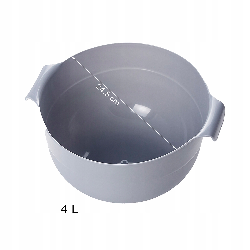 - Didelis maišymo dubuo (4 l) – indas su patogiomis rankenomis pravers minkant duonos tešlą ar maišant blynų tešlą.
