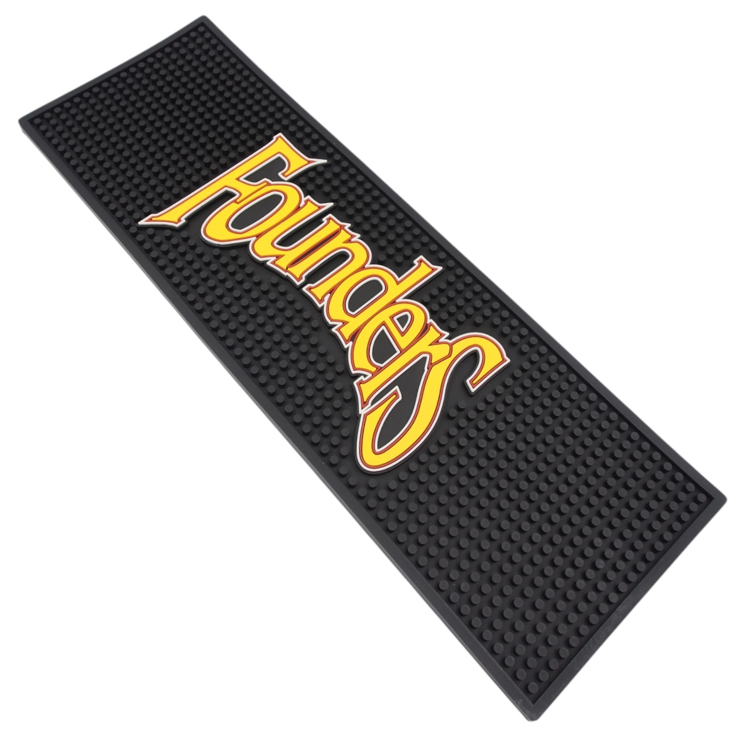 Patvarus ir stilingas baro kilimėlis su garsiojo amerikietiško alaus prekės ženklo „Founders“ logotipu. Pagamintas iš aukštos kokybės gumos, jis yra neslystantis, atsparus drėgmei ir lengvai valomas. Specialus paviršius su iškiliais taškeliais surenka išsiliejusius skysčius bei padeda išlaikyti stiklines ir taures stabiliai ant baro paviršiaus.