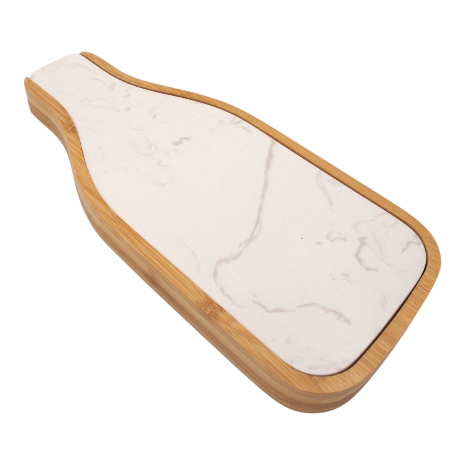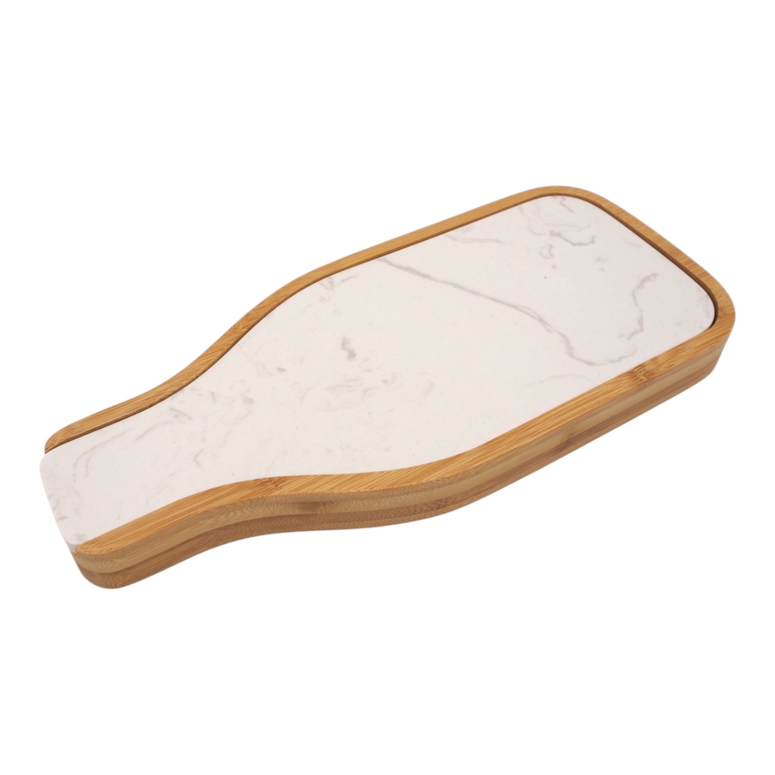 Marmurinė serviravimo lenta su bambuko pagrindu (35,4 × 15,2 × 3,1 cm)