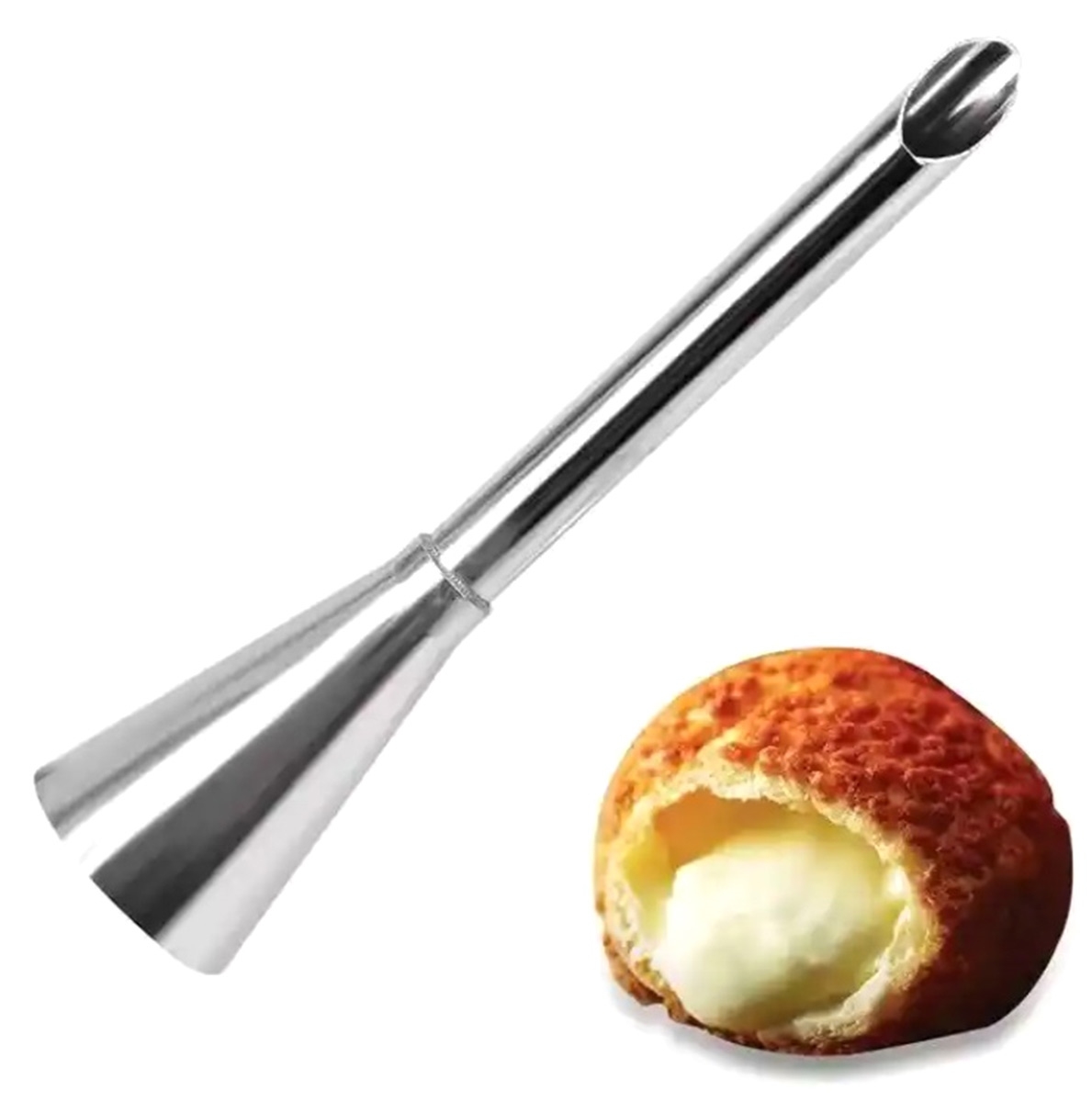Šis patogus švirkštimo antgalis, pagamintas iš aukštos kokybės nerūdijančio plieno, puikiai tiks konditeriams ir kepinių mėgėjams. Naudojamas įdaryti tortus, keksiukus, pyragaičius įvairiais įdarais – nuo kremo iki glajaus – ir taip pat puikiai pasitarnaus patiekalų dekoravimui.