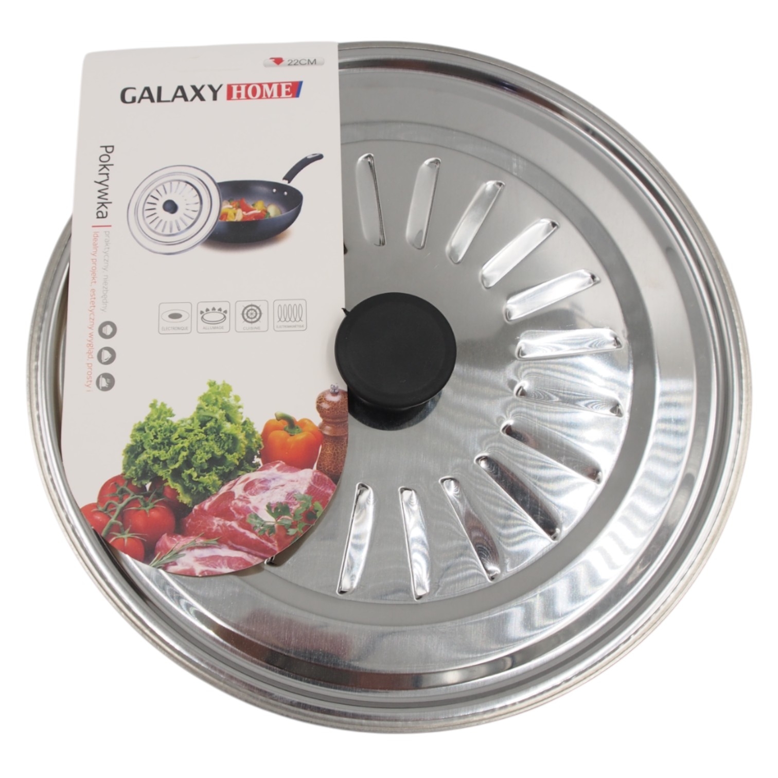 Šis Galaxy Home prekės ženklo dangtis – praktiškas ir universalus pasirinkimas kiekvienai virtuvei. Pagamintas iš tvirto nerūdijančio plieno, jis pasižymi ilgaamžiškumu ir atsparumu karščiui. Specialios ventiliacijos angos leidžia garams cirkuliuoti, todėl maistas gaminamas tolygiai, išlaiko natūralų skonį ir aromatą.