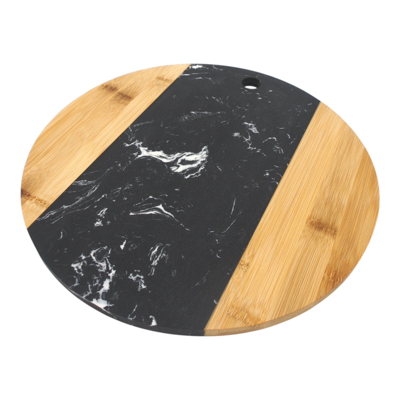 Apvalus marmurinis serviravimo padėklas su bambuko detalėmis, Ø 30 cm