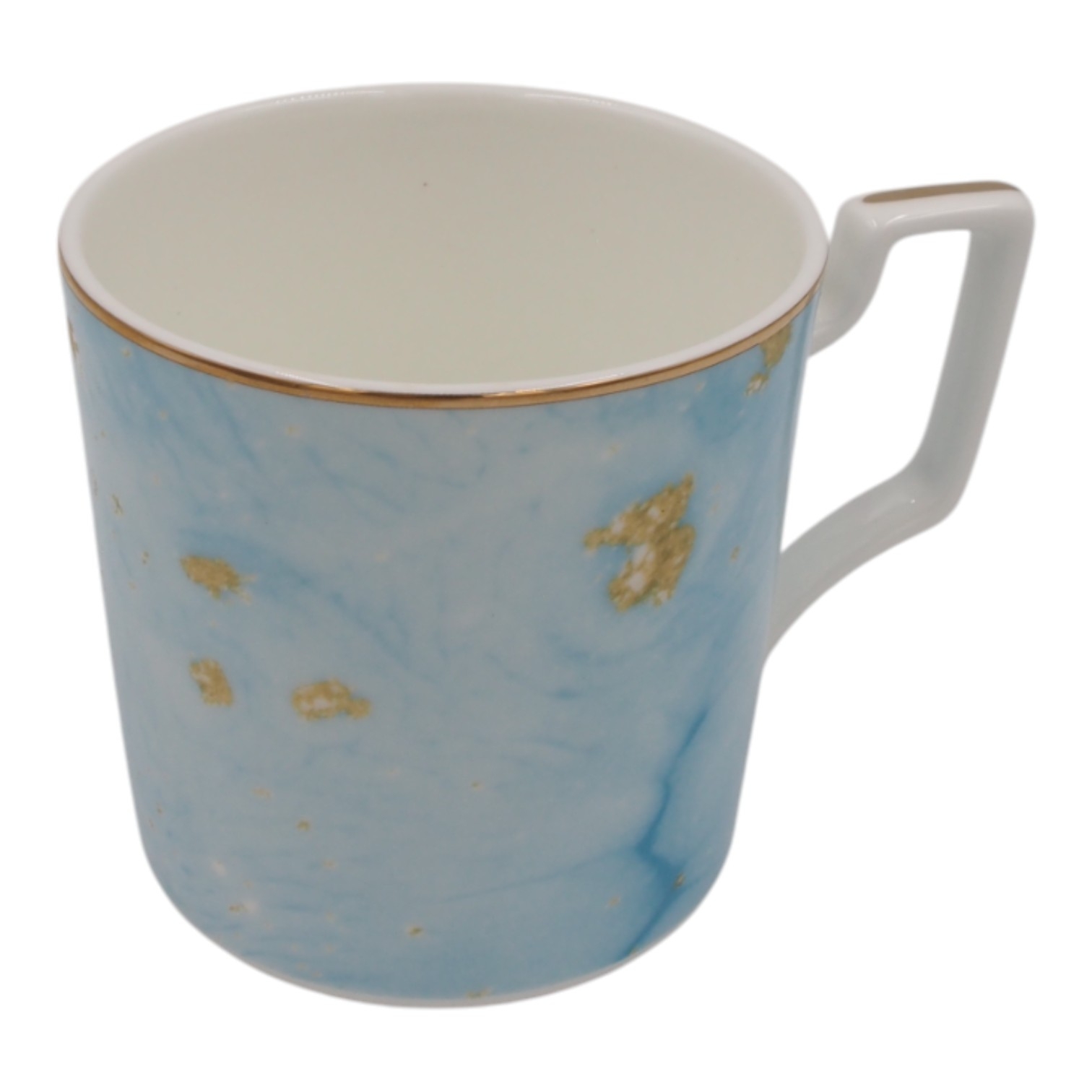 Stilingas porcelianinis puodelis, dekoruotas mėlynu fonu su subtiliomis auksinėmis detalėmis bei elegantišku kraštelio apvadu. Talpus – net 400 ml – todėl puikiai tinka mėgstantiems didesnę kavą, arbatą ar kitus karštus gėrimus.
