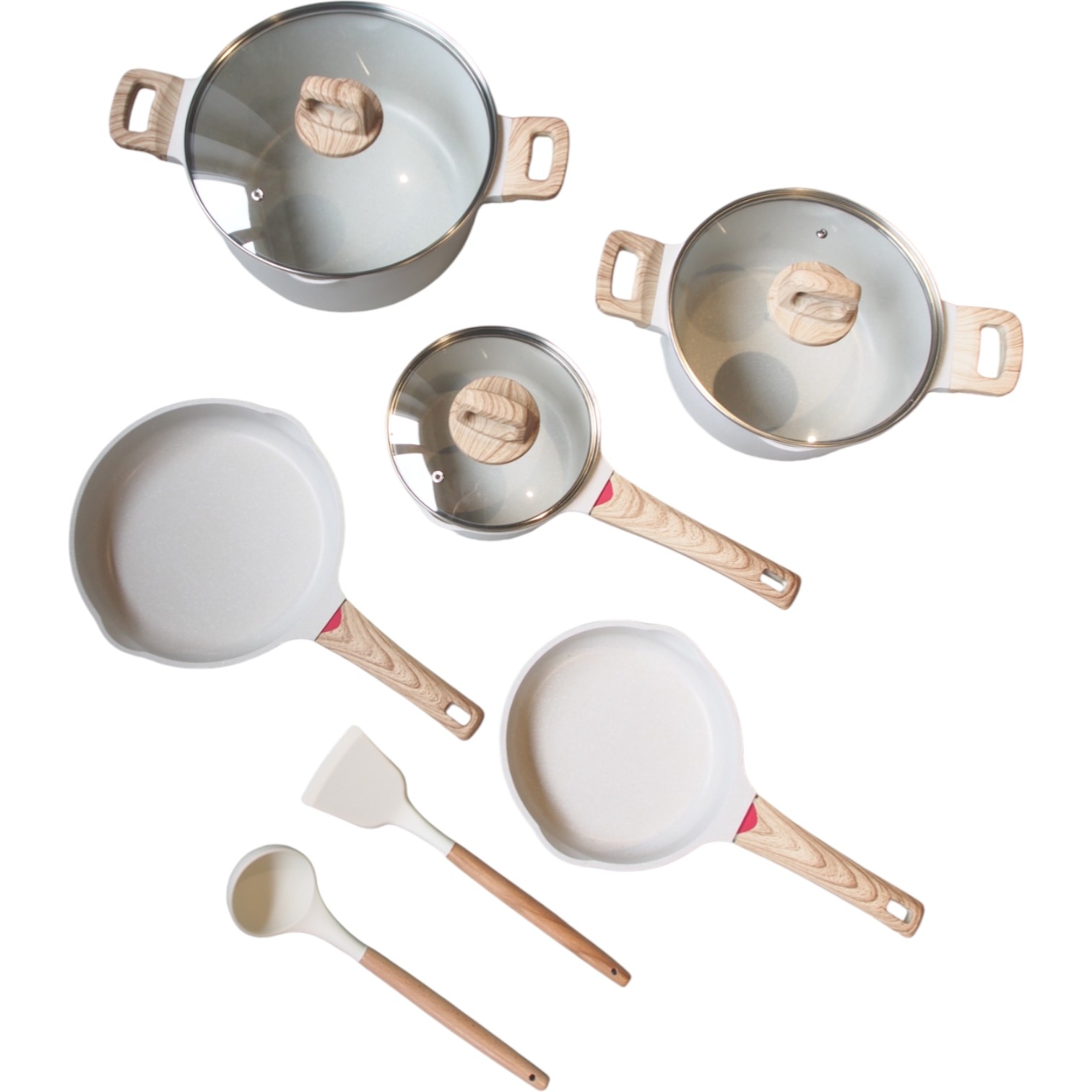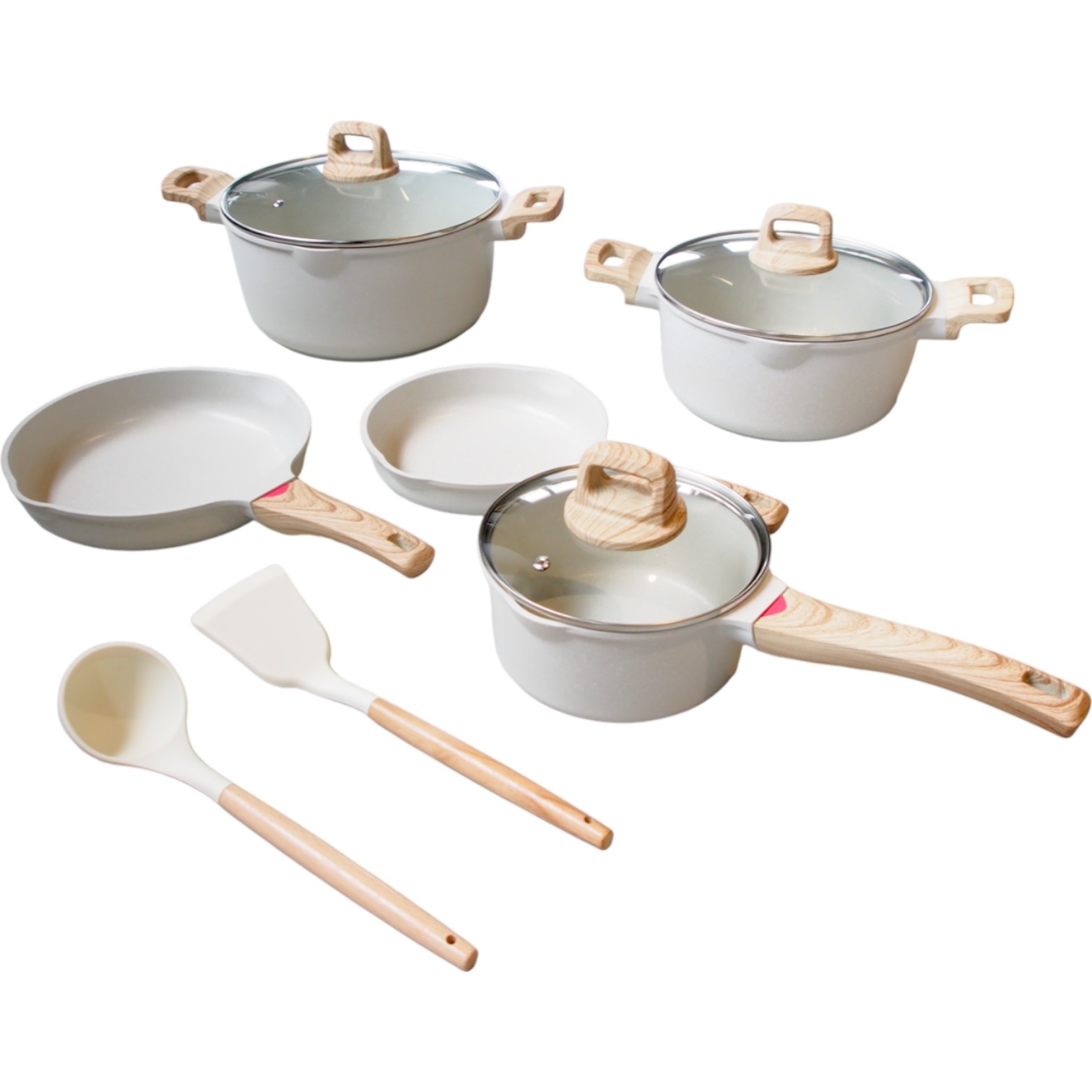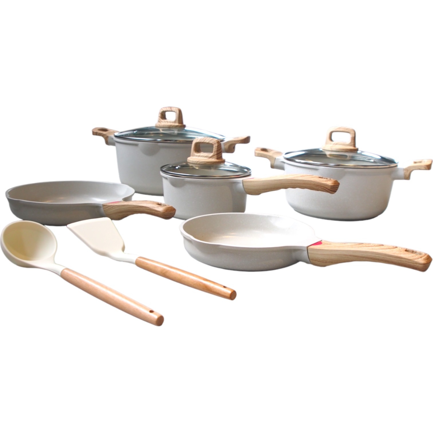 Atraskite puikų balansą tarp elegancijos ir funkcionalumo su šiuo 12 dalių granito virtuvės indų rinkiniu. Aukštos kokybės danga, modernaus dizaino medžio imitacijos rankenos bei universalus panaudojimas – viskas, ko reikia tiek kasdieniam maisto gaminimui, tiek įkvėptiems kulinariniams eksperimentams!