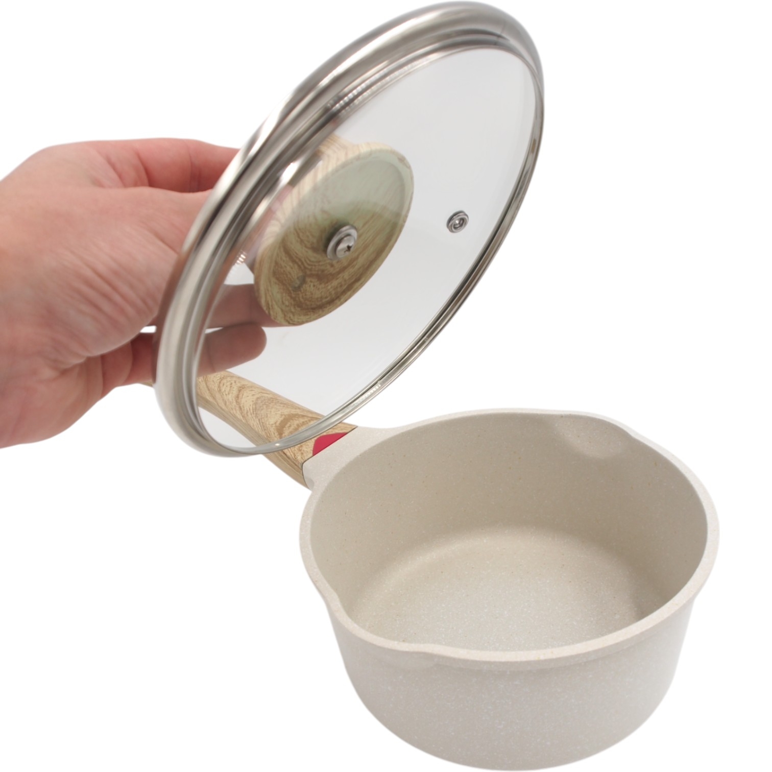 Ergonomiškos medžio imitacijos rankenos – neįkaistančios, patogios ir stilingos.