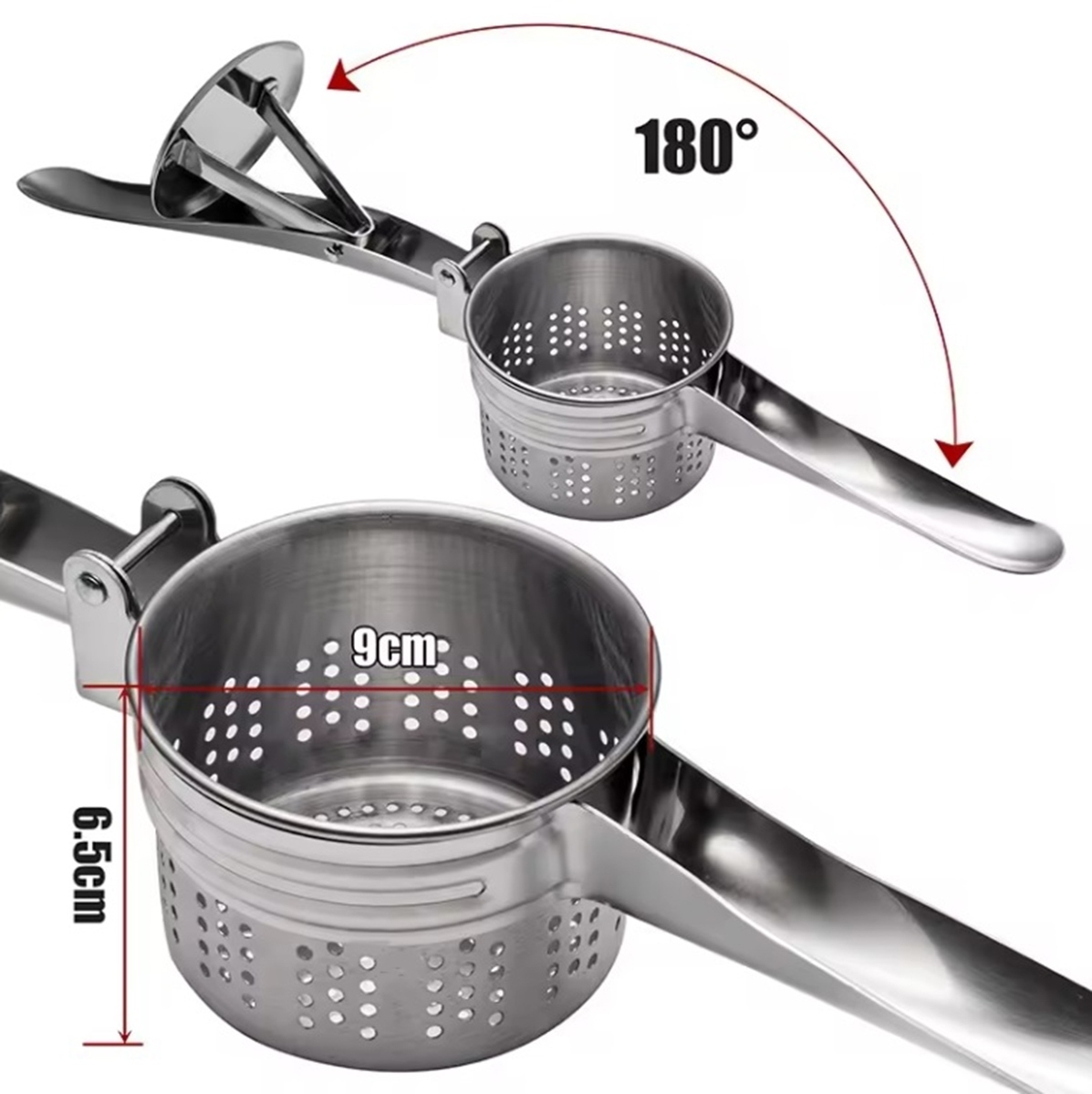 Rankinis, plieninis presas bulvėms ir kitiems minkštiems vaisiams bei daržovėms spausti. Patogi, tobulai profiliuota rankena. Greitai suspausti bulvių gabalėlius į tyrę ar makaronus. Lengva naudoti ir prižiūrėti (koštuvą galima nuimti).