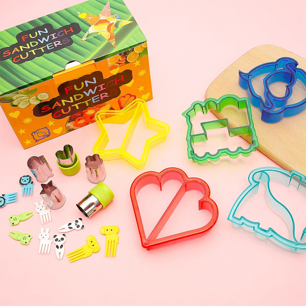Plastikinės formos, patogios gaminant ar pjaustant sumuštinius su smeigtukais ar kitus panašius užkandžius.