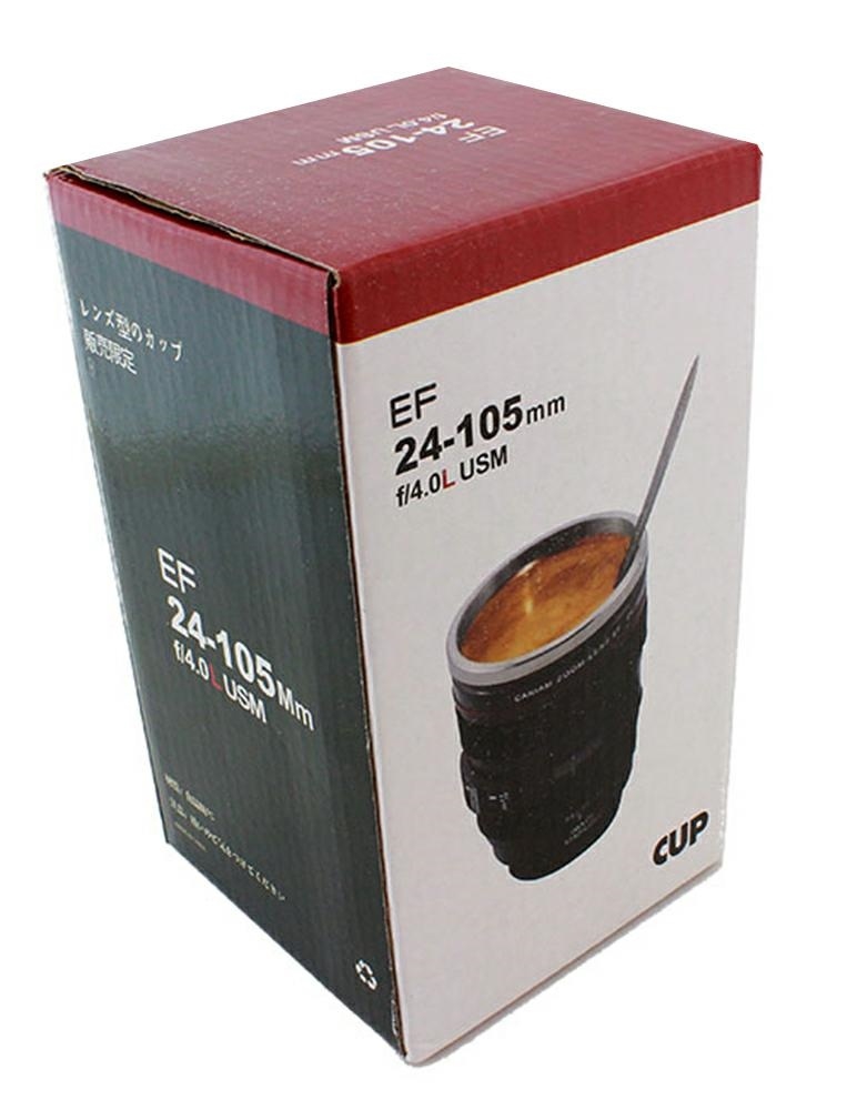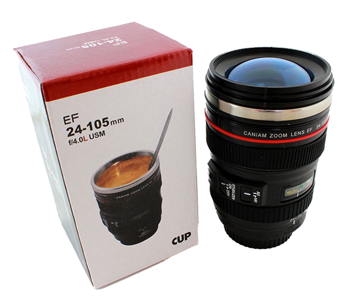 Termosinis puodelis, įkvėptas Canon 24–105 mm objektyvo.