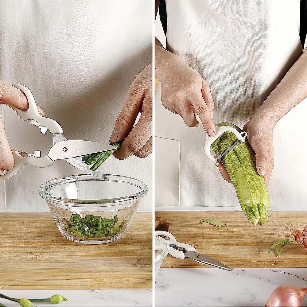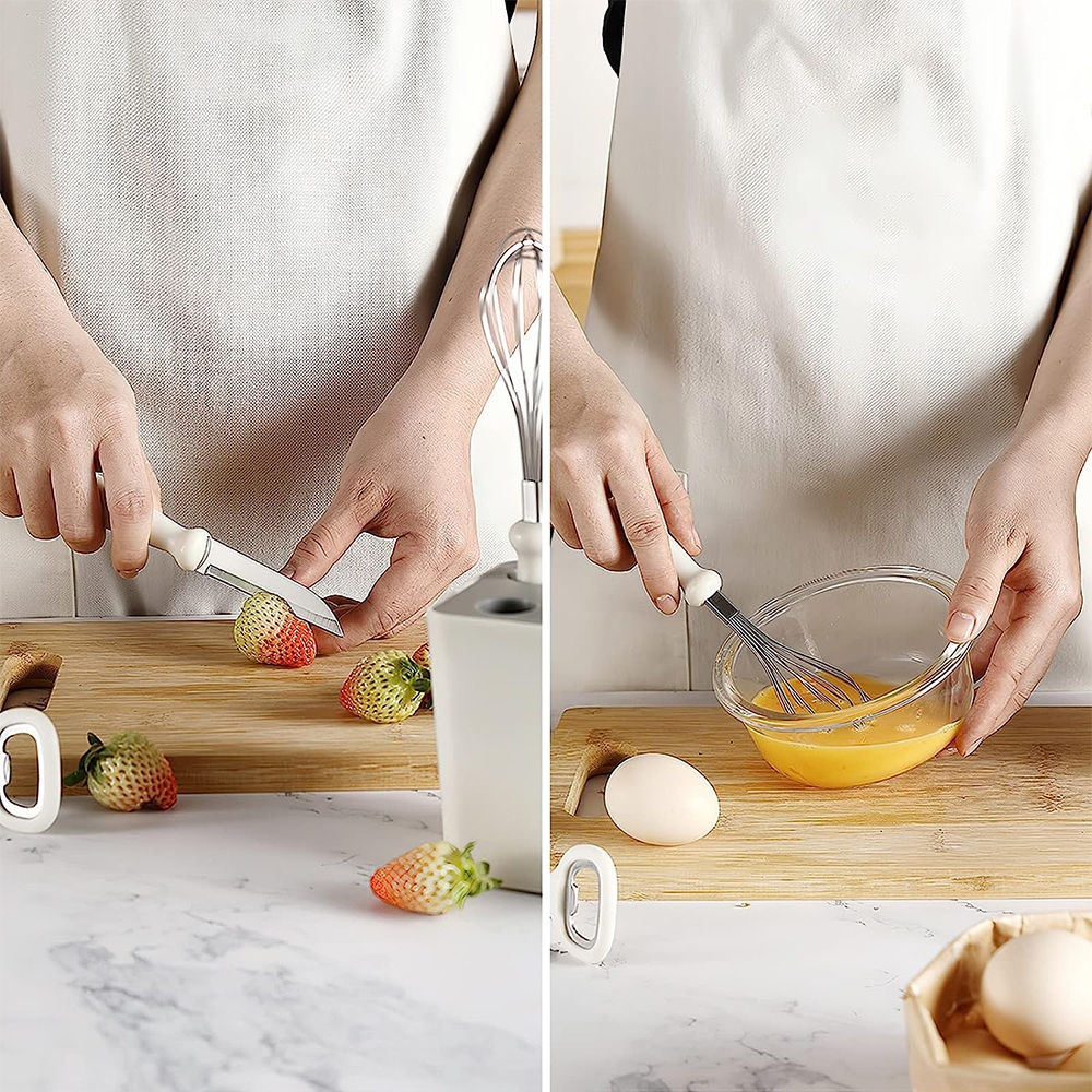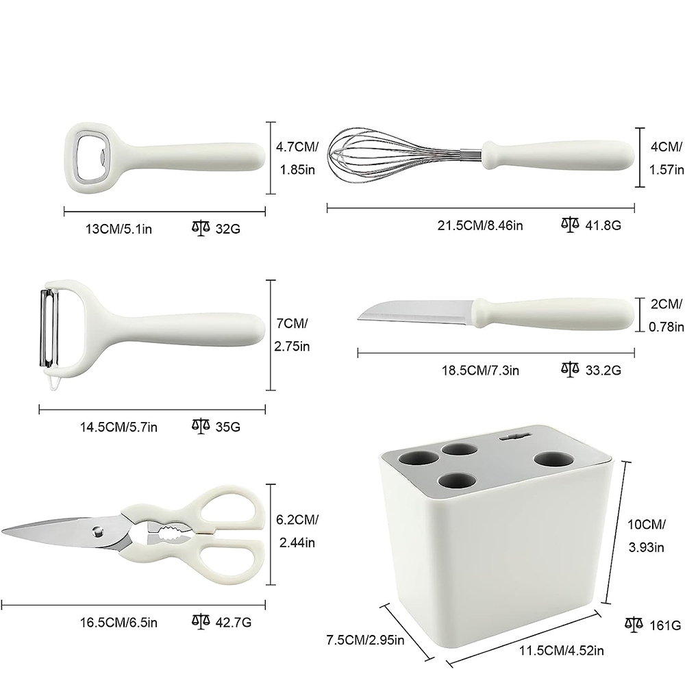 Virtuvės reikmenų komplektas su svarbiausiais įrankiais, kurie padeda atlikti įvairias virtuvės užduotis.